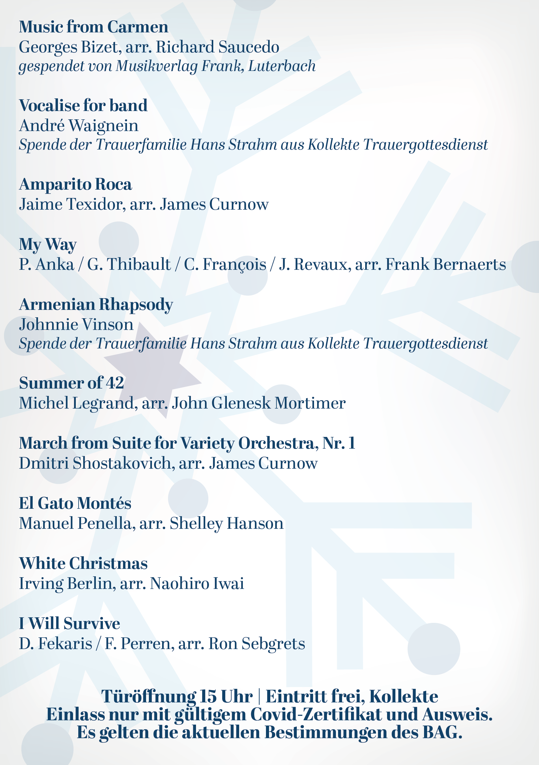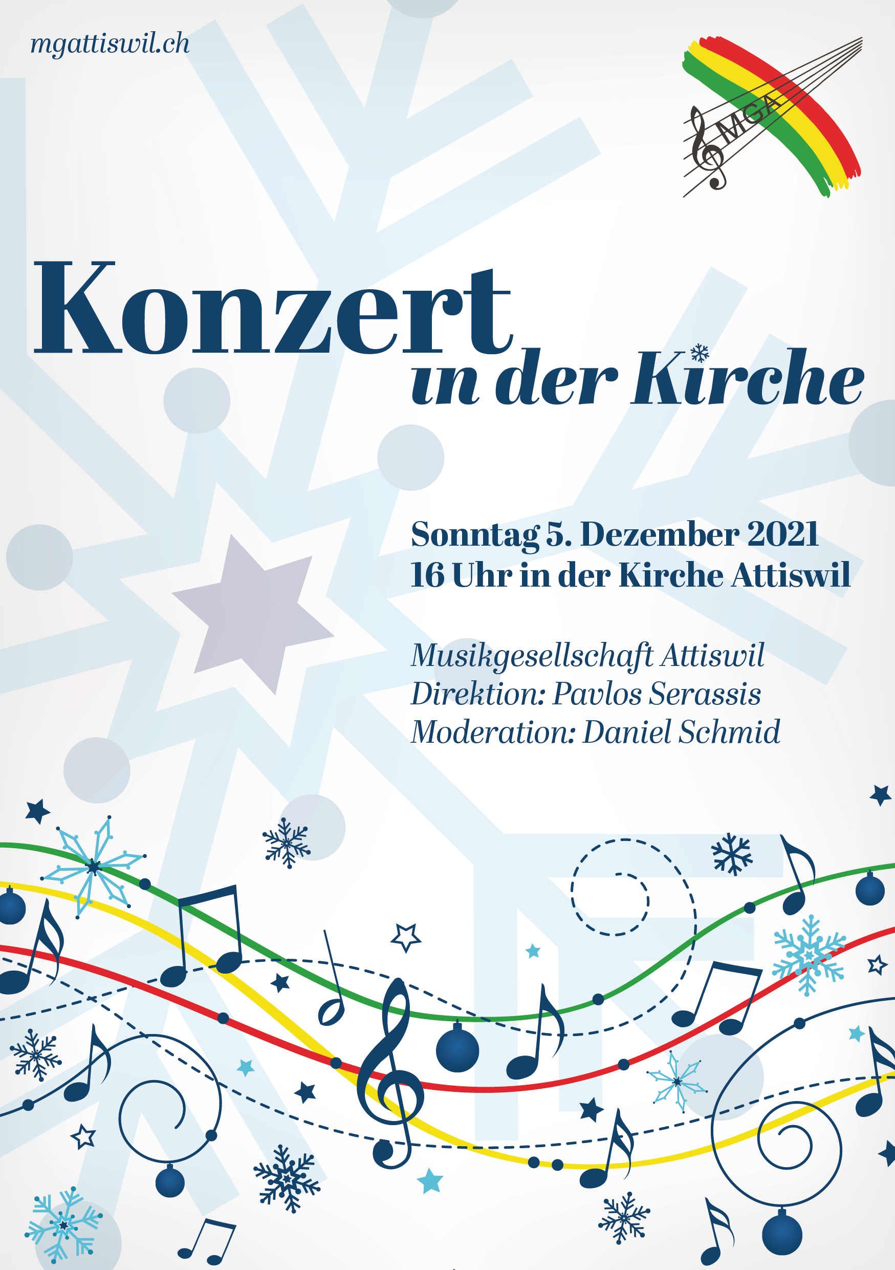 Das Konzert in der Kirche findet am Sonntag, 5. Dezember 2021 in der Kirche Attiswil statt. Türöffnung ist um 15 Uhr. Der Eintritt ist frei, aktuell aber nur mit einem gültigem Covid-Zertifikat und Ausweis erlaubt. Es gelten zudem die aktuellen Bestimmungen des BAG.